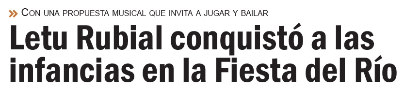 En primera vez en la Fiesta del Río, Letu Rubial se subió al escenario con una propuesta pensada especialmente para las infancias, logrando una muy buena respuesta del público y cautivando a los más pequeños.