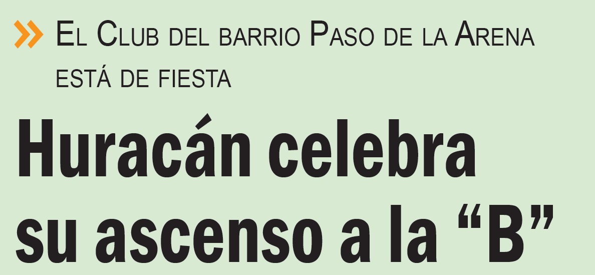 El Club Huracán de Paso de la Arena invita a toda la comunidad a festejar el reciente ascenso a la Segunda Divisional B con una celebración popular que tendrá lugar este sábado 6 de diciembre, desde las 17 horas, en su sede social.